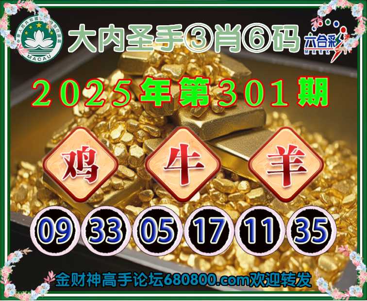 301期:【大内圣手】 🌷③肖⑥码🌷【鸡牛羊】开:牛05准