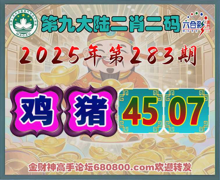 283期:『第九大陆』 🤩二肖二码🤩【鸡猪】【45.07】开:鸡45准