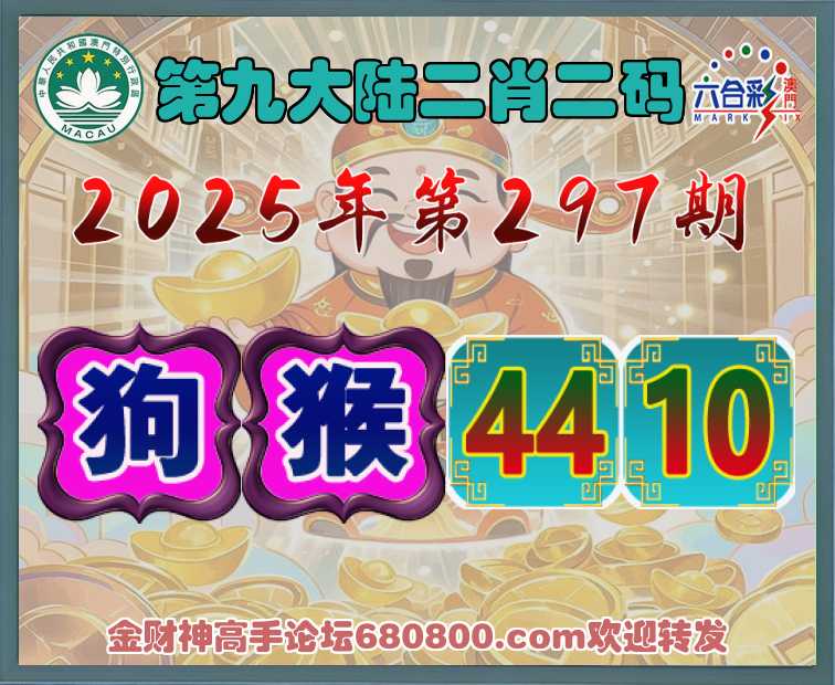 297期:『第九大陆』 🤩二肖二码🤩【狗猴】【44.10】开:狗44准