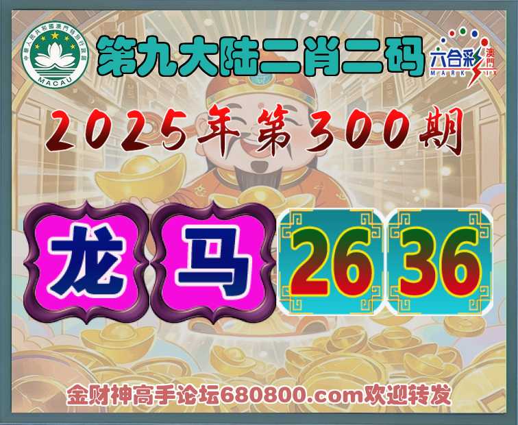 300期:『第九大陆』 🤩二肖二码🤩【龙马】【26.36】开:虎40错
